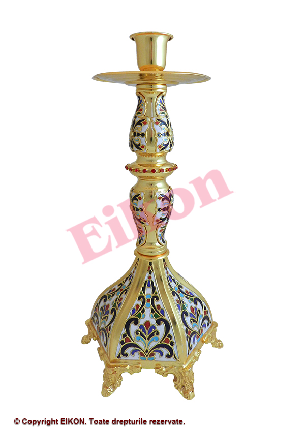 Sfeșnic Sfânta Masă, 1 lumânare, cu pietre roșii și email.